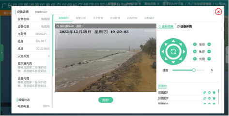 智能哨位可視化監(jiān)測以保護區(qū)重要管轄區(qū)域,在保護區(qū)內建設智能哨位監(jiān)測,在保護區(qū)重要監(jiān)測區(qū)域建設智能哨衛(wèi)終端,通過對重要區(qū)域的人員/船只的活動情況進行管控及統(tǒng)計,系統(tǒng)實現支持前端設備地圖實時位置顯示、設備運行狀態(tài)監(jiān)測、視頻圖像實時監(jiān)看與回放、對前端設備的統(tǒng)一管控,按時進行系統(tǒng)運行參數統(tǒng)計管理。手機APP及后臺管理端,能對前端設備進行語音宣傳等在不同季節(jié)可以隨時通過遠程更換文字或語音內容的目標。通過在保護區(qū)智能哨位可視化監(jiān)測項目建設,實現PC端及手機APP統(tǒng)一管理,解決保護區(qū)人手不足、遠程管護的迫切需要,不斷提升保護區(qū)生態(tài)保護的智能化水平。